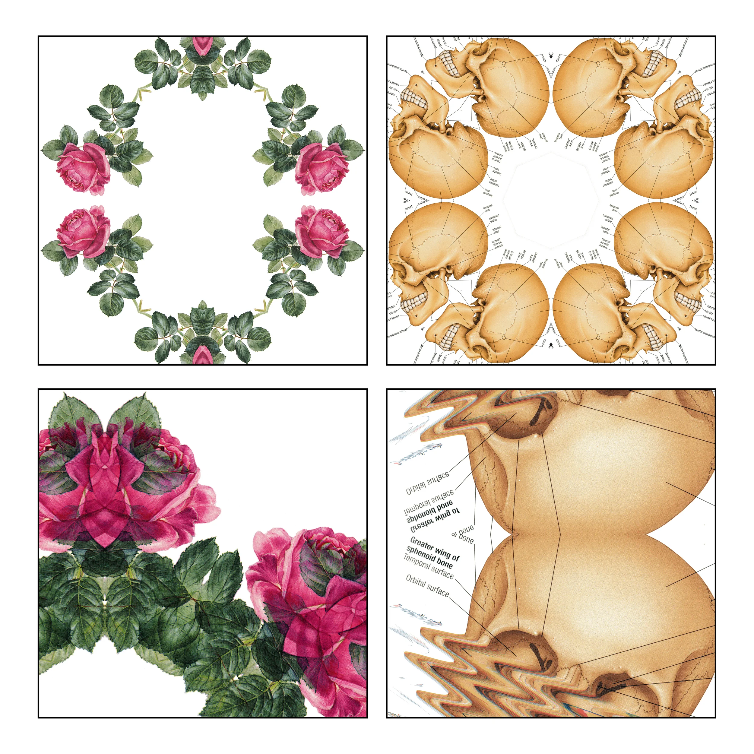 The limited edition poster included the rose illustration, the skull illustration, and one of the "skull-melting" experiments. The pattern in the background is made of lightning bolts from the "Steal Your Face" logo. As part of the psychedelic appeal of the poster, I inserted some pieces that can't be seen immediately, but can be slowly discovered after looking closely.